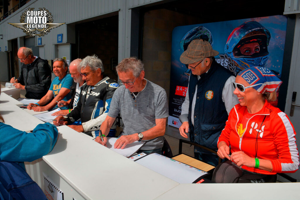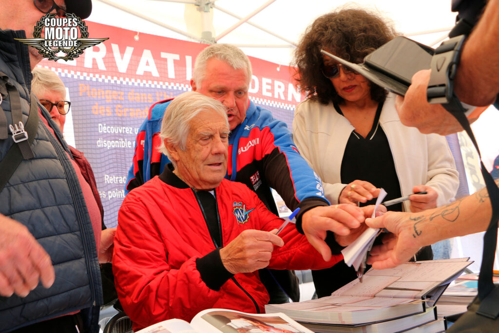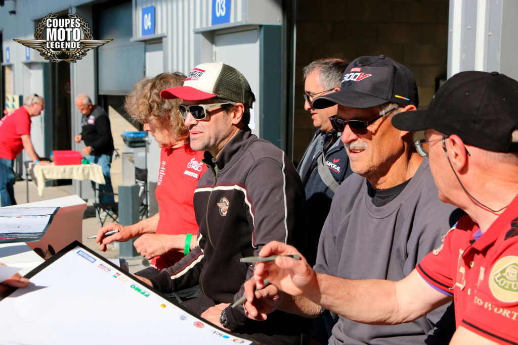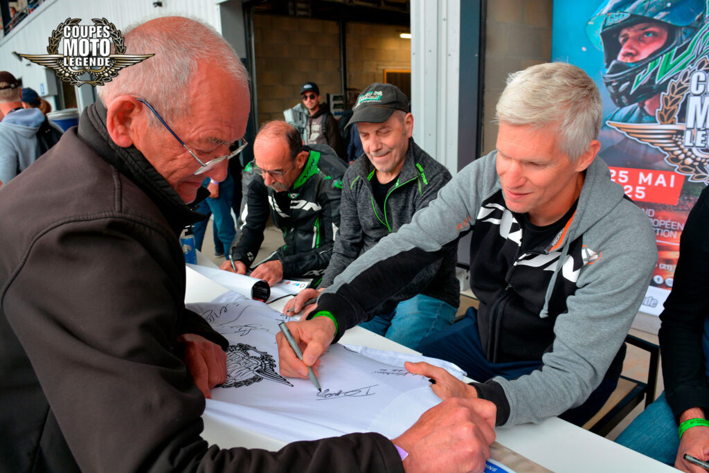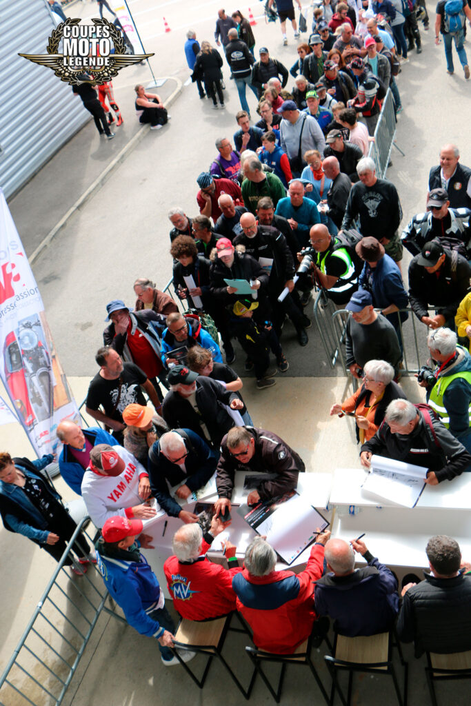 Aux Coupes Moto Légende, les séances de dédicaces sont un moment fort et très apprécié des visiteurs. Elles offrent une opportunité unique de rencontrer des pilotes légendaires et des figures emblématiques du monde de la moto, qui sont présents tout au long du week-end.