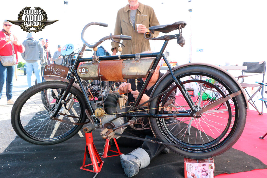Lors des Coupes Moto Légende sur le circuit de Dijon-Prenois, la pré-grille est l'endroit où les motos participantes se regroupent avant de s'élancer sur la piste pour leurs démonstrations. C'est un moment privilégié pour les spectateurs, qui peuvent admirer de près ces machines historiques, échanger avec les pilotes et s'imprégner de l'ambiance unique de cet événement dédié aux motos de légende.